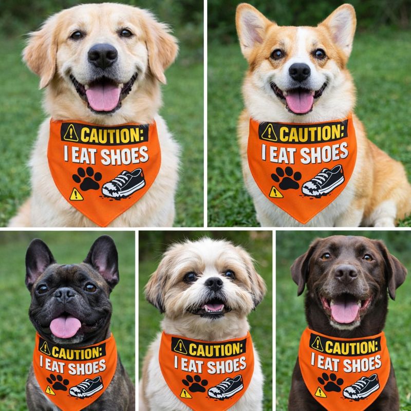 Caution: I Eat Shoes™ Funny Dog Bandana – Naughty Pet Warning Scarf